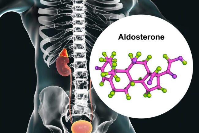 What is aldosterone? Aldosterone is a hormone made by the adrenal glands. The adrenal glands are found on top of the kidneys and are responsible for producing several important hormones. Aldosterone is essential for sodium conservation in the kidney. It plays a vital role in the homeostatic regulation of blood pressure, plasma sodium (Na+), and…